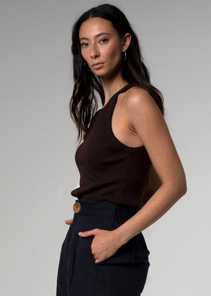 Moto Racerback Brown Ribbed Cotton Tank - Clémence Mai
