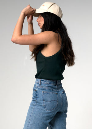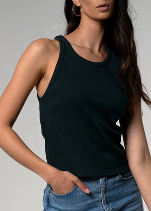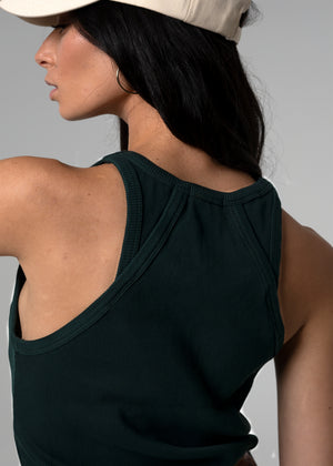 Moto Racerback Green Ribbed Cotton Tank - Clémence Mai