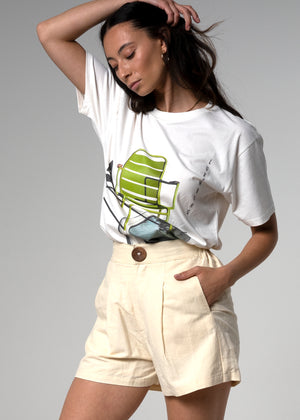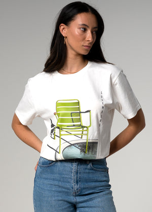 Our Luxembourg tee is a tribute to the beloved 'Jardin du Luxembourg' in Paris’s 6th arrondissement. The design highlights the park's iconic green low armchairs and the charming boating lake; perfect spots to unwind and soak in the relaxed, quintessentially Parisian atmosphere.